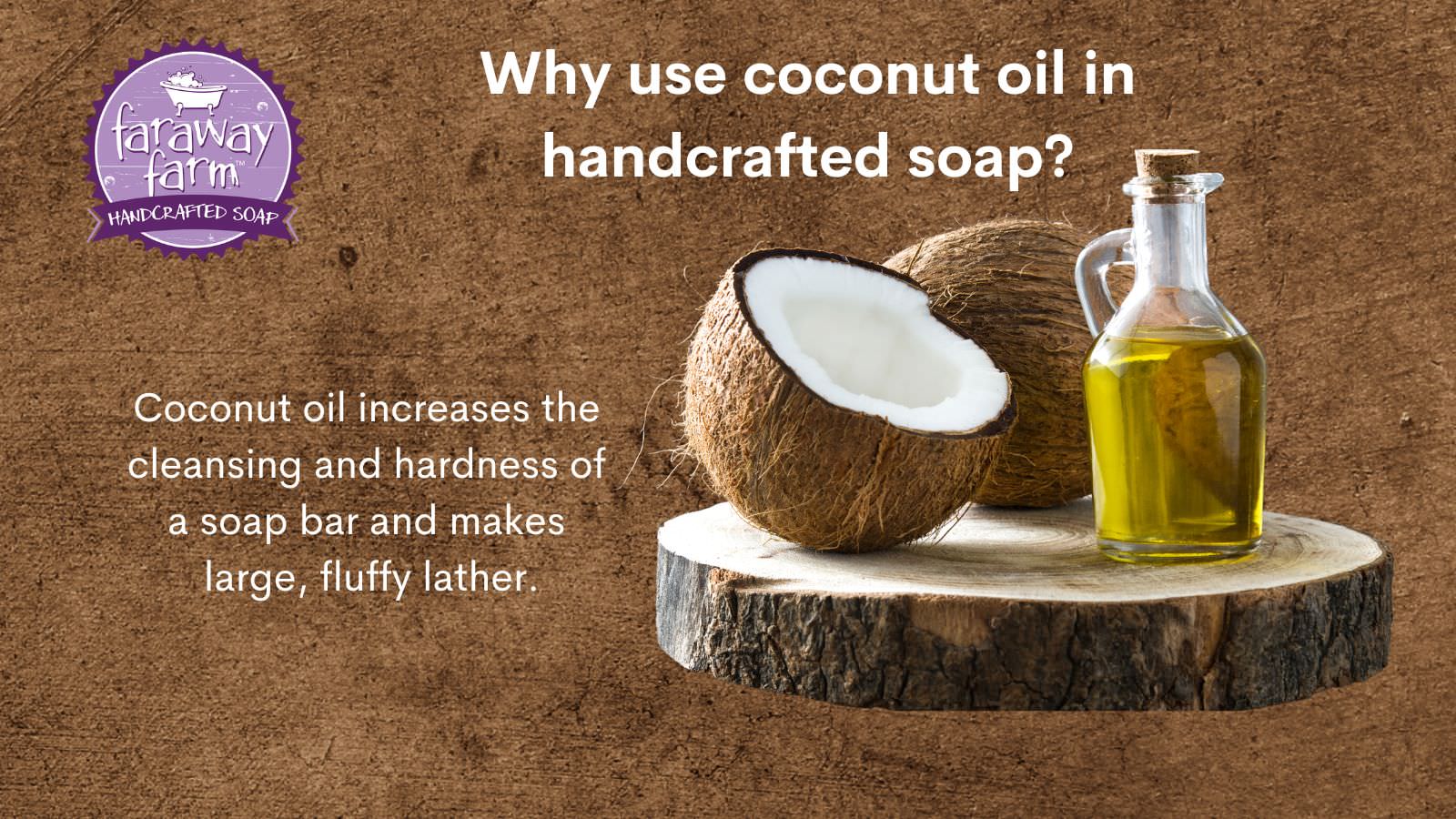 Ingredient Spotlight: Coconut Oil Posted by Karen Zimmer on Oct 1st 2024 ##FarAwayFarmSoap #CoconutOil #MadeInMinnesota #LotsaLatherSoap #ShopLocal #ShopSmall #ColdProcessSoap #HandmadeSoap Facebook Email Print Pinterest